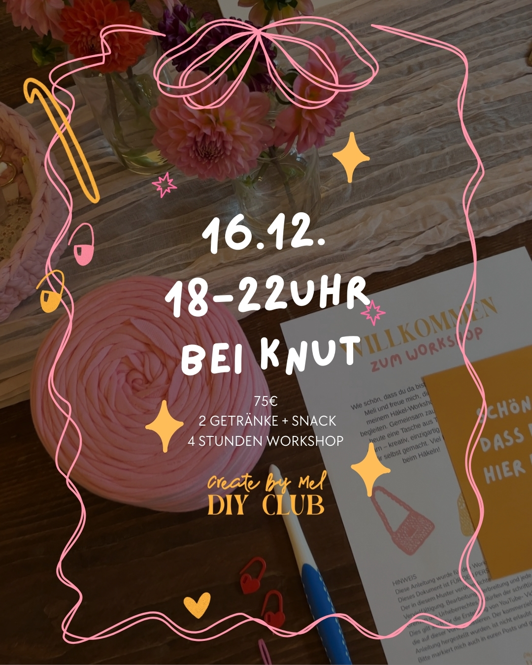 Entdecke kreative Workshops, handgemachte gehäkelte Taschen, DIY Ideen, Kreativität und Inspiration.